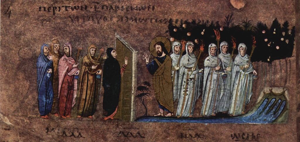 “Then the kingdom of heaven shall be likened to ten virgins who took their lamps and went out to meet the bridegroom. Now five of them were wise, and five were foolish. Those who were foolish took their lamps and took no oil with them, but the wise took oil in their vessels with their lamps. But while the bridegroom was delayed, they all slumbered and slept.