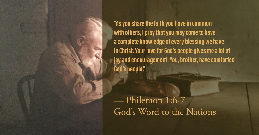 Communion is no decorative bread left behind on the table for show, but Living Bread from Heaven given to put all the good on the go in love of the household of God... I don't remember why I paused in Philemon. Between the post surgical pain and pain meds, who knows? But this much I … Continue reading Give Thanks, Take and Eat All The Good