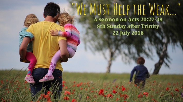 In His Church, the Good Shepherd tends His to His blood-bought flock by the Word of His grace. He sends that gracious Word as glad tidings for all who are weak. Having strengthened us by His grace alone, then the Lord points us outside of ourselves to love and help our own weak neighbors. “In this way–in this way–we must help the weak and remember the words of the Lord Jesus.” That way is not ours to choose and define. This way is commended to us, by the Word of His grace.