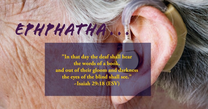 “Ephphatha,” Jesus says, “Be Opened!” Our Lord has a way of restoring whatever is damaged or not functioning in us. That way is by His word. He speaks. We hear Him, perhaps as though for the first time! He speaks–He calls forth an audible in us. The Word is made flesh and sent to your flesh, saying: