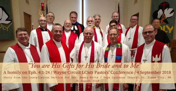 Serving the Servants of the Lord: We kicked off a new year with new laborers sent from the Lord of the Harvest, in answer to the prayers of His blood-bought people. Here is a fit Word from the occasion of our Wayne Circuit LCMS Pastors’ Conference held yesterday, September 4, 2018.