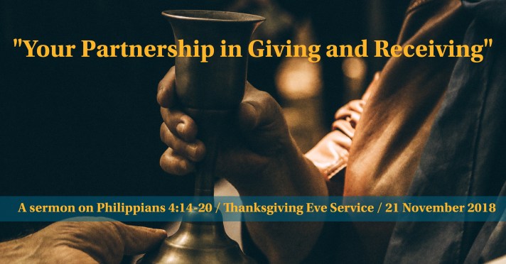 A sermon on Philippians 4:14-20 / Thanksgiving Eve Service / 21 November 2018