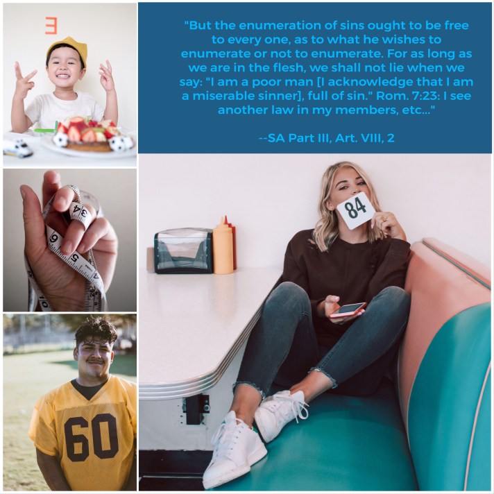 2] But the enumeration of sins ought to be free to every one, as to what he wishes to enumerate or not to enumerate. For as long as we are in the flesh, we shall not lie when we say: “I am a poor man [I acknowledge that I am a miserable sinner], full of sin.” Rom. 7:23: I see another law in my members, etc. For since private absolution originates in the Office of the Keys, it should not be despised [neglected], but greatly and highly esteemed [of the greatest worth], as [also] all other offices of the Christian Church.