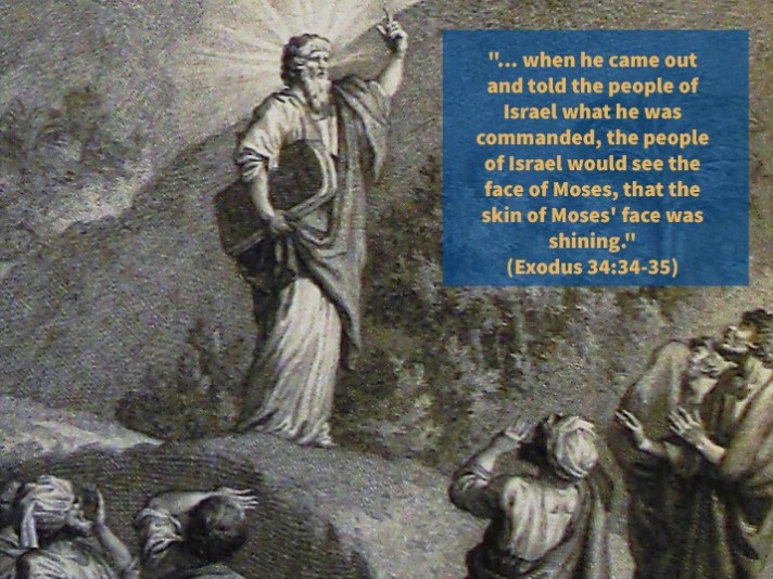 29 When Moses came down from Mount Sinai, with the two tablets of the testimony in his hand as he came down from the mountain, Moses did not know that the skin of his face shone because he had been talking with God. 30 Aaron and all the people of Israel saw Moses, and behold, the skin of his face shone, and they were afraid to come near him. 31 But Moses called to them, and Aaron and all the leaders of the congregation returned to him, and Moses talked with them. 32 Afterward all the people of Israel came near, and he commanded them all that the Lord had spoken with him in Mount Sinai. 33 And when Moses had finished speaking with them, he put a veil over his face.