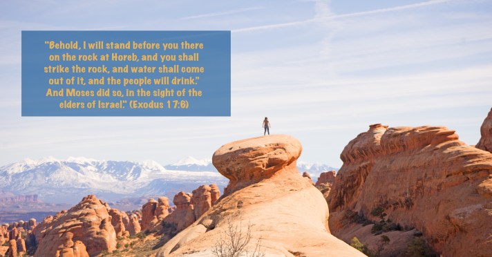 1 All the congregation of the people of Israel moved on from the wilderness of Sin by stages, according to the commandment of the Lord, and camped at Rephidim, but there was no water for the people to drink. 2 Therefore the people quarreled with Moses and said, “Give us water to drink.” And Moses said to them, “Why do you quarrel with me? Why do you test the Lord?” 3 But the people thirsted there for water, and the people grumbled against Moses and said, “Why did you bring us up out of Egypt, to kill us and our children and our livestock with thirst?” 4 So Moses cried to the Lord, “What shall I do with this people? They are almost ready to stone me.” 5 And the Lord said to Moses, “Pass on before the people, taking with you some of the elders of Israel, and take in your hand the staff with which you struck the Nile, and go. 6 Behold, I will stand before you there on the rock at Horeb, and you shall strike the rock, and water shall come out of it, and the people will drink.” And Moses did so, in the sight of the elders of Israel. 7 And he called the name of the place Massah and Meribah, because of the quarreling of the people of Israel, and because they tested the Lord by saying, “Is the Lord among us or not?”