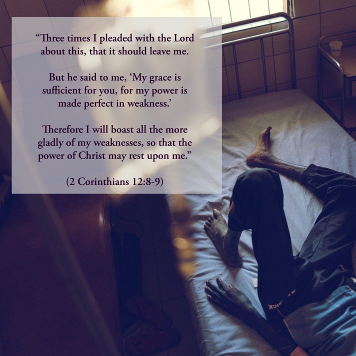 12:1 I must go on boasting. Though there is nothing to be gained by it, I will go on to visions and revelations of the Lord. 2 I know a man in Christ who fourteen years ago was caught up to the third heaven—whether in the body or out of the body I do not know, God knows. 3 And I know that this man was caught up into paradise—whether in the body or out of the body I do not know, God knows— 4 and he heard things that cannot be told, which man may not utter. 5 On behalf of this man I will boast, but on my own behalf I will not boast, except of my weaknesses— 6 though if I should wish to boast, I would not be a fool, for I would be speaking the truth; but I refrain from it, so that no one may think more of me than he sees in me or hears from me. 7 So to keep me from becoming conceited because of the surpassing greatness of the revelations, a thorn was given me in the flesh, a messenger of Satan to harass me, to keep me from becoming conceited. 8 Three times I pleaded with the Lord about this, that it should leave me. 9 But he said to me, “My grace is sufficient for you, for my power is made perfect in weakness.” Therefore I will boast all the more gladly of my weaknesses, so that the power of Christ may rest upon me.