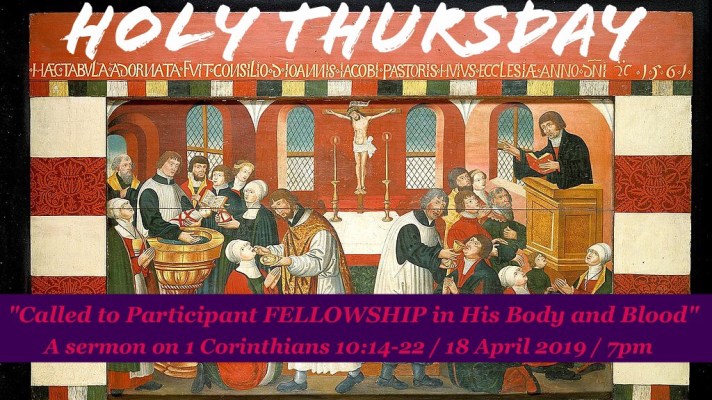 A sermon on 1 Cor. 10:14-22 / Fellowship in His Word Series / Holy Thursday / 18 April 2019