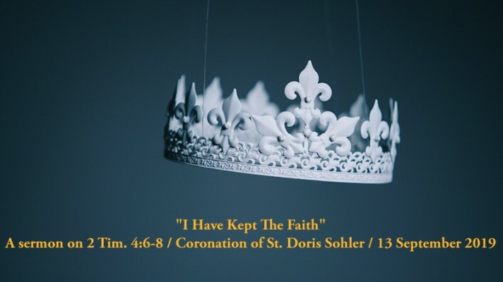 A sermon on 2 Tim. 4:6-8 / Coronation of St. Doris Sohler / 13 September 2019